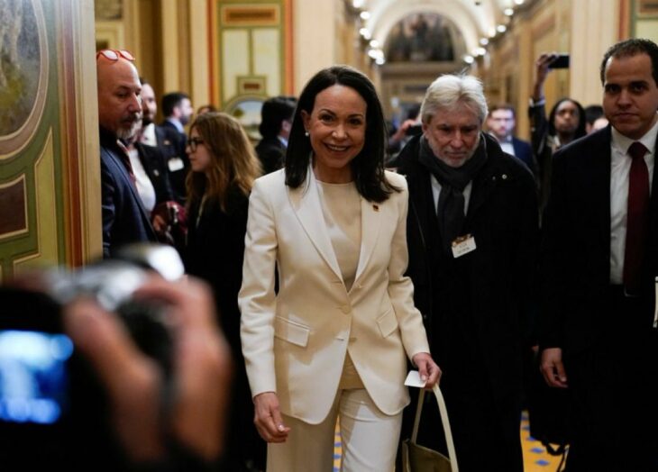La dirigente opositora venezolana, María Corina Machado, discutió el futuro de Venezuela con el presidente Donald Trump en la Casa Blanca este jueves 15 de enero. La reunión se dió en el salón Dinner Priver.