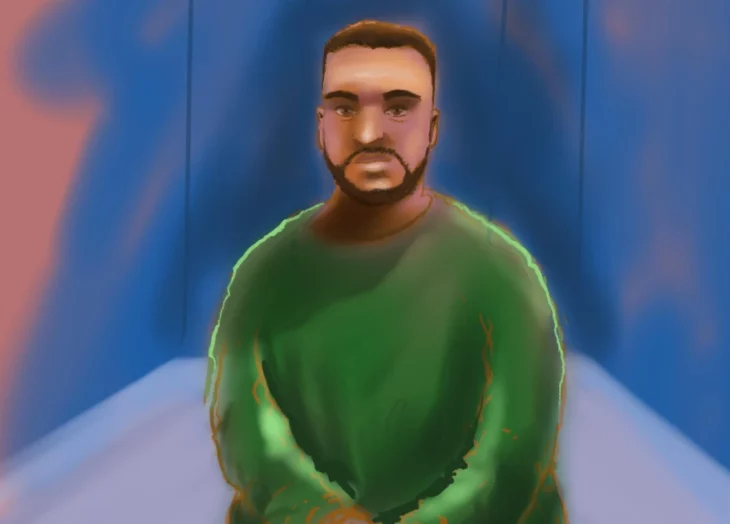 No presentó declaraciones de culpabilidad o inocencia respecto de los cargos en su contra, entre ellos asesinato y cometer un acto terrorista. La breve comparecencia se centró en prorrogar una orden de silencio que impide divulgar las identidades de víctimas y sobrevivientes del ataque que no han optado por identificarse públicamente.
