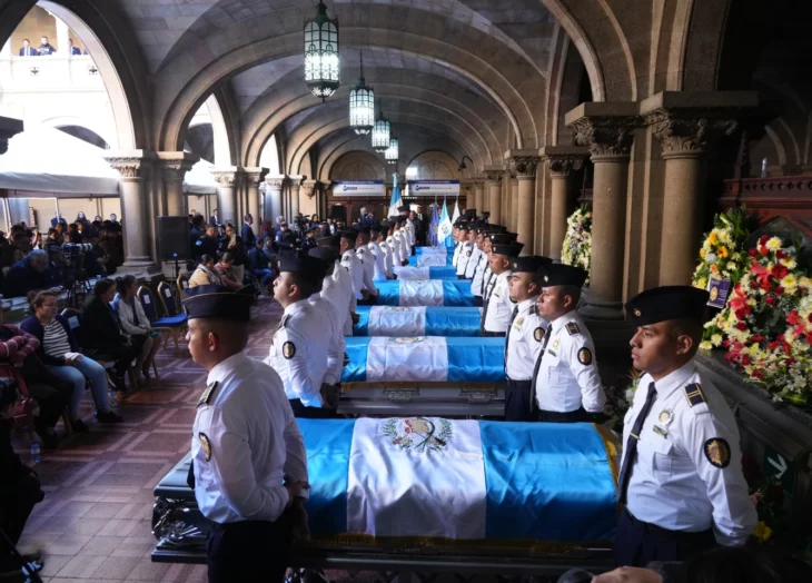 “Hoy me duele entregarle a cada una de las familias esta bandera (de Guatemala), símbolo de una patria que no olvidará el sacrificio y compromiso de sus policías caídos en el cumplimiento de su deber”, dijo el presidente Arévalo.
