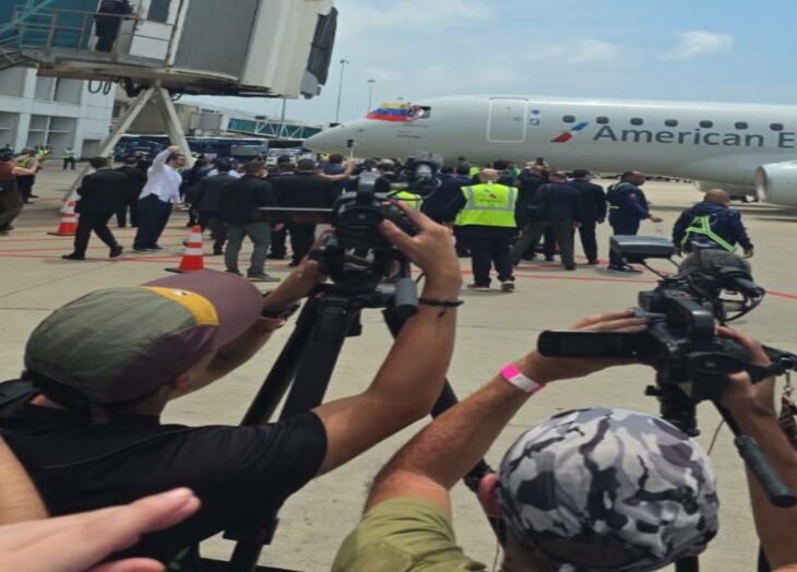 El primer vuelo comercial directo entre Estados Unidos y Venezuela en cerca de siete años llegó este jueves desde el Aeropuerto Internacional de Miami a bordo de un avión de American Airlines