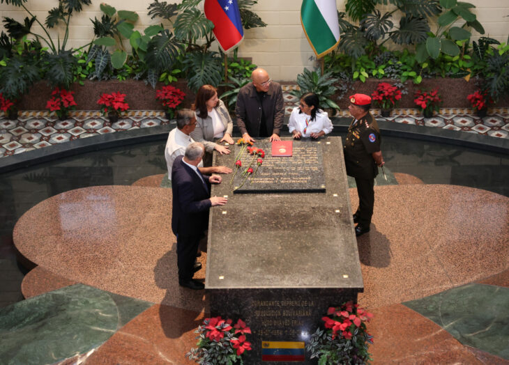 Tras recoger una ofrenda floral en la entrada del cuartel, se dirigió al monumento conocido como “La Flor de los Cuatro Elementos”, obra del arquitecto Fruto Vivas, donde reposan los restos de Hugo Rafael Chávez Frías.