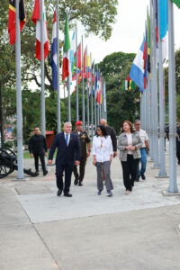 A su llegada al recinto histórico, la presidenta encargada inició un recorrido solemne por el Bosque de Banderas, un espacio que rinde tributo a la unión latinoamericana y caribeña.