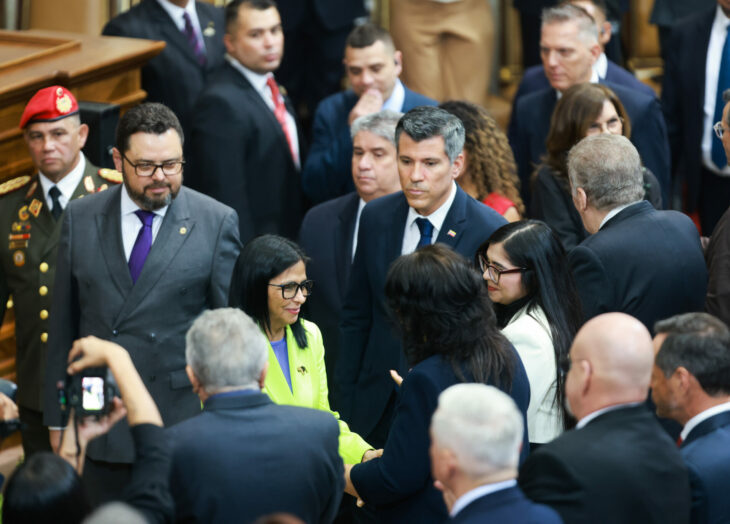 En cumplimiento al artículo 237 de la Constitución Bolivariana de Venezuela, el presidente de la Asamblea Nacional, Jorge Rodríguez, recibió a la presidenta encargada, Delcy Rodríguez, para la rendición de cuentas de la gestión del Poder Ejecutivo durante el año 2025.
