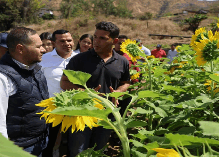 El ministro del Poder Popular para la Educación Universitaria, Ricardo Sánchez, acompañó al rector César Gómez y a otras autoridades universitarias en una visita a las plantaciones de girasoles.