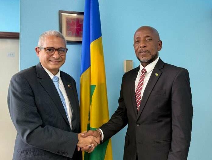 El encargado de Negocios de la Embajada de Venezuela en Kingstown, Francisco Pérez Santana, se reunió con el nuevo ministro de Asuntos Exteriores, Comercio, Inversión Extranjera y Asuntos de la Diáspora de San Vicente y las Granadinas, Dwight Fitzgerald Bramble, como parte del proceso de fortalecimiento de la cooperación y la amistad entre ambas naciones.