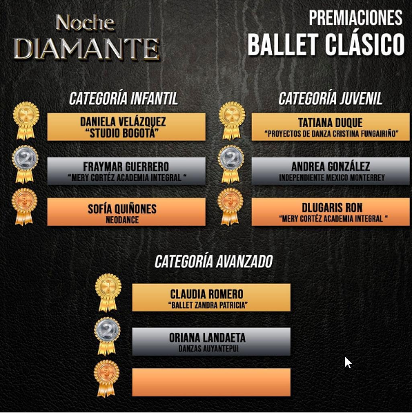 Tuvo categorías en los géneros: clásico, neoclásico, danza contemporánea, jazz lírico y danza nacionalista.