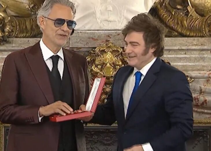 Javier Milei condecora a Andrea Bocelli con la Orden de Mayo