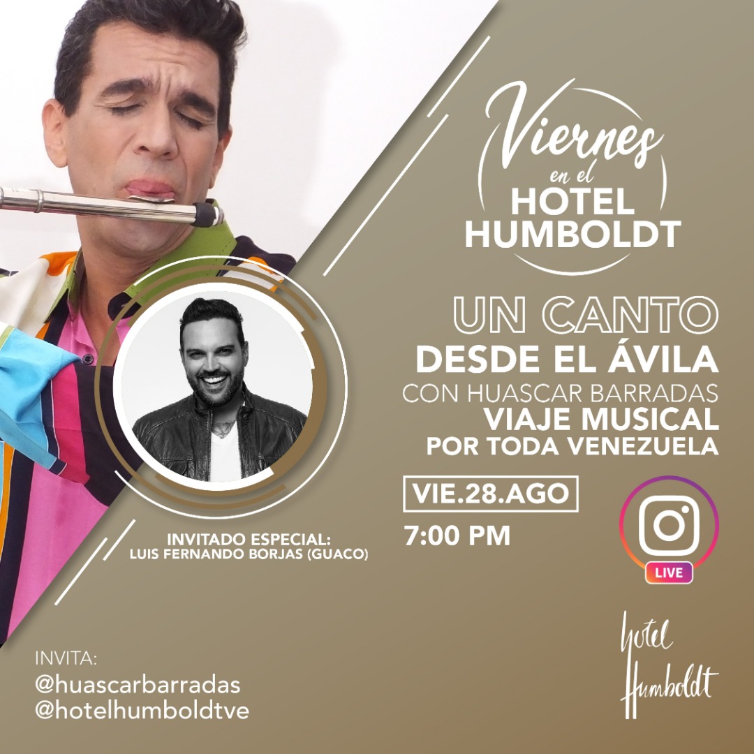 Precisó que a través de las cuentas @huascarbarradas y @hotelhumboldtve podrán disfrutar del concierto virtual que, además, contará con Luis Fernando Borjas -cantante de Guaco- como invitado especial.