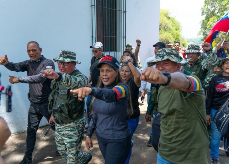 Desde el salón de la Casa del Congreso de Angostura, en Ciudad Bolívar, en perfecta fusión popular-militar-policial, la líder regional estuvo acompañada del G/D Miguel Yilales Arteaga, comandante de la Zodi Bolívar número 62, del comandante de la Milicia Nacional Bolivariana, Armando Soriano, del secretario General de Gobierno, Rada Gamluch, del alcalde Sergio Hernández, Gabinete de los Servicios públicos y social, representantes del Partido Socialista Unido de Venezuela (Psuv), Protección Civil, Cicpc y otros órganos de seguridad.