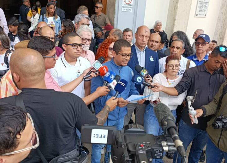 Evans dio lectura al contenido de la propuesta que se prestará ante la AN, acompañado de dirigentes de distintas corrientes y partidos, desde la iglesia San Pedro en Caracas.