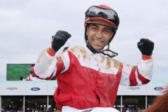 El jinete inició su racha del sábado en la primera carrera a bordo de Sexpectations, presentado por Teresa Pompay.