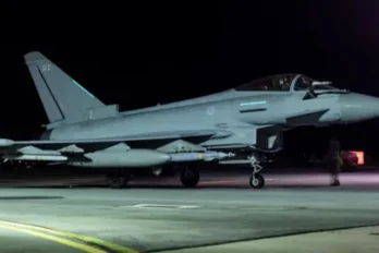 El ministerio de Defensa británico señaló que aviones de combate Typhoon FGR4 fueron apoyados por un avión cisterna Voyager.
