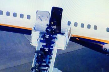 Maduro se encuentra vestido con un conjunto deportivo gris y bajó por las escaleras del avión rodeado de los uniformados.