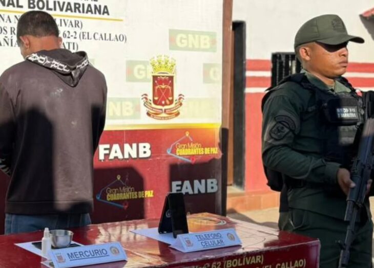 Efectivos militares de la Fuerza Armada Nacional Bolivariana (Fanb) detuvieron a un hombre durante una inspección de rutina en el Punto de Atención al Ciudadano (PAC) “La Carata”. De acuerdo con el reporte oficial de las autoridades, el sujeto tenía dentro de su bolso un envase que contenía 14,59 gramos de presunto mercurio.