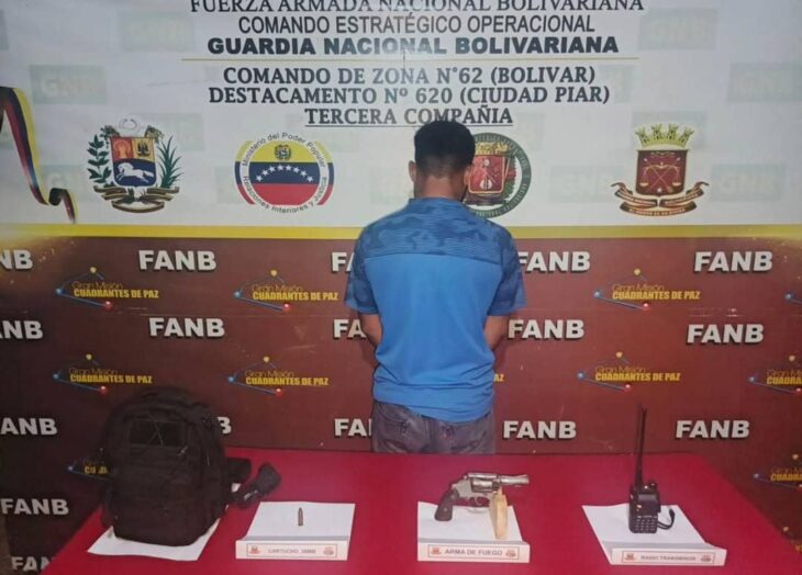 Efectivos militares de la Fuerza Armada Nacional Bolivariana (Fanb), adscritos al Comando de Zona de la Guardia Nacional Bolivariana N° 62 del estado Bolívar, llevaron a cabo la aprehensión de un ciudadano en el sector Molino Rojo de la población de La Paragua.