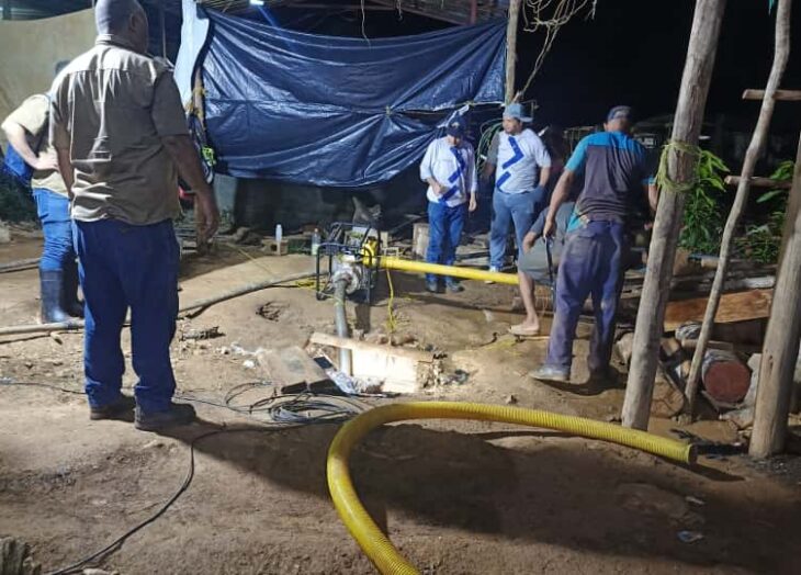 Continúan las labores de achicamiento para la recuperar cuerpos de mineros en El Callao
