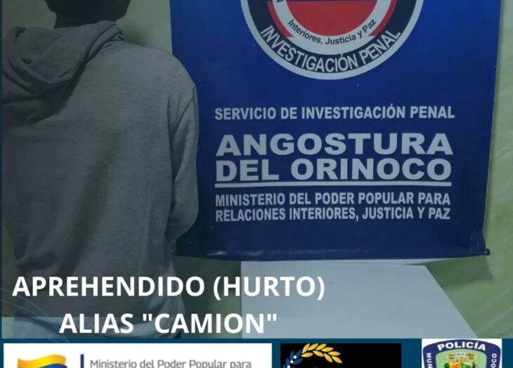 Un sujeto conocido como “Camión” quien se dedicaba al hurto en el sector Araguaney de Ciudad Bolívar resultó detenido. La captura se llevó a cabo en la parroquia José Antonio Páez.