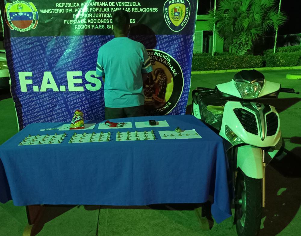 Ciudad Bolívar.- Funcionarios de las Fuerzas de Acciones Especiales (Faes) Redip Guayana aprehendieron a un ciudadano por tenencia de sustancias estupefacientes y psicotrópicas, en el municipio Angostura del Orinoco.