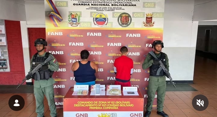 Un hombre y una mujer fueron detenidos por efectivos de la Guardia Nacional Bolivariana (GNB) luego de que les habrían incautado un envoltorio con presunta droga.