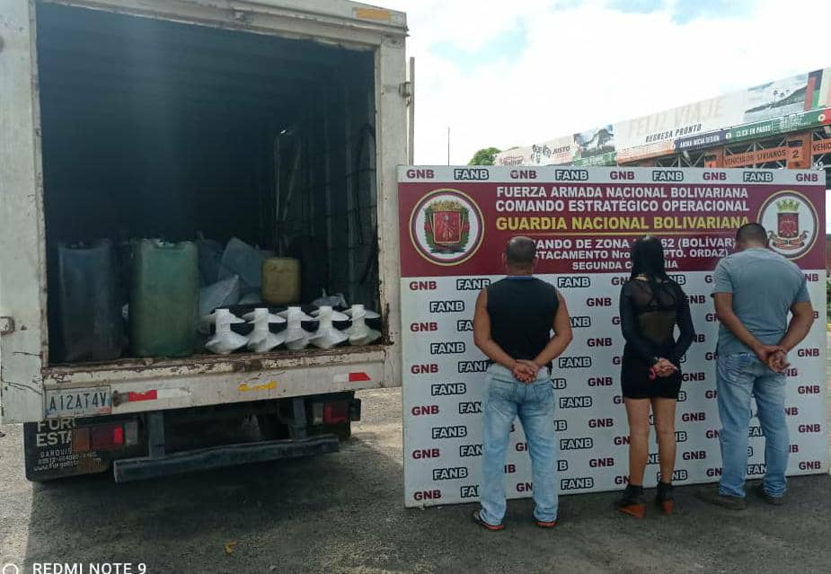 Dos hombres y una mujer resultaron aprehendidos por efectivos de la Guardia Nacional Bolivariana (GNB) pertenecientes al Destacamento Nº 625, en Puerto Ordaz, por el presunto traslado ilegal de propelas de motores de fuera de borda.