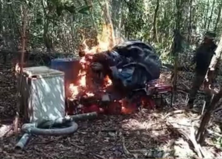 En estricto cumplimiento de la Ley Penal del Ambiente, y tras constatar que estos elementos servían de base para la depredación del ecosistema y la violación del ordenamiento jurídico territorial. La Fanb procedió a la incineración de los equipos en el lugar de los hechos.