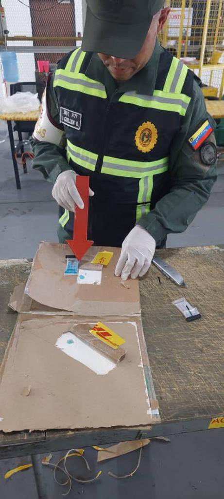 Efectivos de la Guardia Nacional Bolivariana hallaron la droga, durante la revisión de encomiendas en la sede de la empresa DHL en La California, estado Miranda.