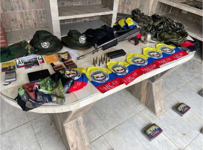 Dentro de la infraestructura los militares localizaron, además de la droga, armas de fuego y otros materiales alusivos a las Farc. Es así que decomisaron un fusil de asalto Galil calibre 7,62×51, diez municiones de igual calibre, un cargador de fusil y una granada fragmentaria, dice el reporte.