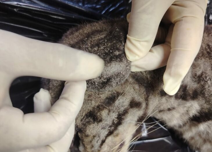 Tenía detalles en el pelaje por presencia de una capa de hollín y signos de dermatitis. Esto indica que el animal transitó por zonas recientemente afectadas por incendios forestales.