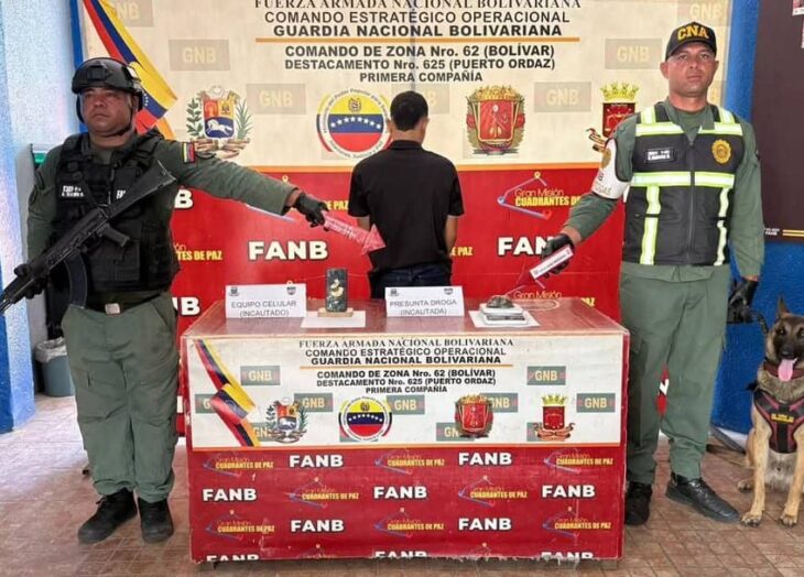 Efectivos militares de la Fanb, adscritos al Comando de Zona de la Guardia Nacional Bolivariana Nro. 62 Bolívar, en trabajo conjunto con la Unidad Regional de Inteligencia Antidrogas Nro. 62 (Uria-62) Bolívar, lograron la aprehensión de un ciudadano y la incautación de sustancias ilícitas en el Punto de Atención al Ciudadano (PAC) “Peaje de Palo Grande”.