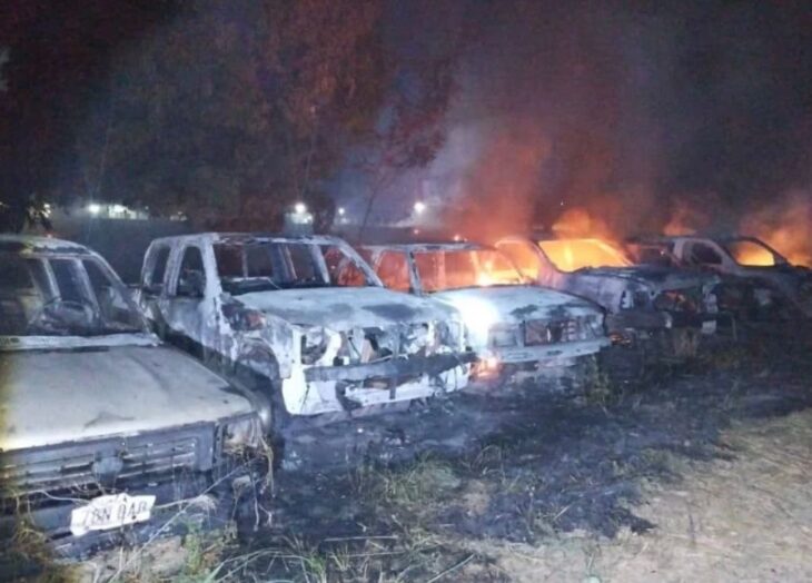 Las llamas del incendio acabaron con siete vehículos de la institución que estaban para ir a proceso de mantenimiento.