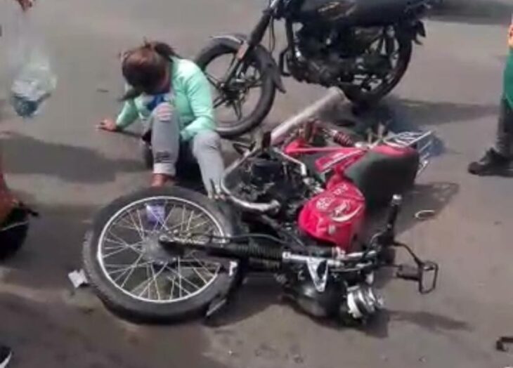 Una mujer que iba en una motocicleta colisionó con otro motorizado, quedando lesionada en el asfalto. Ocurrió en Upata, estado Bolívar.