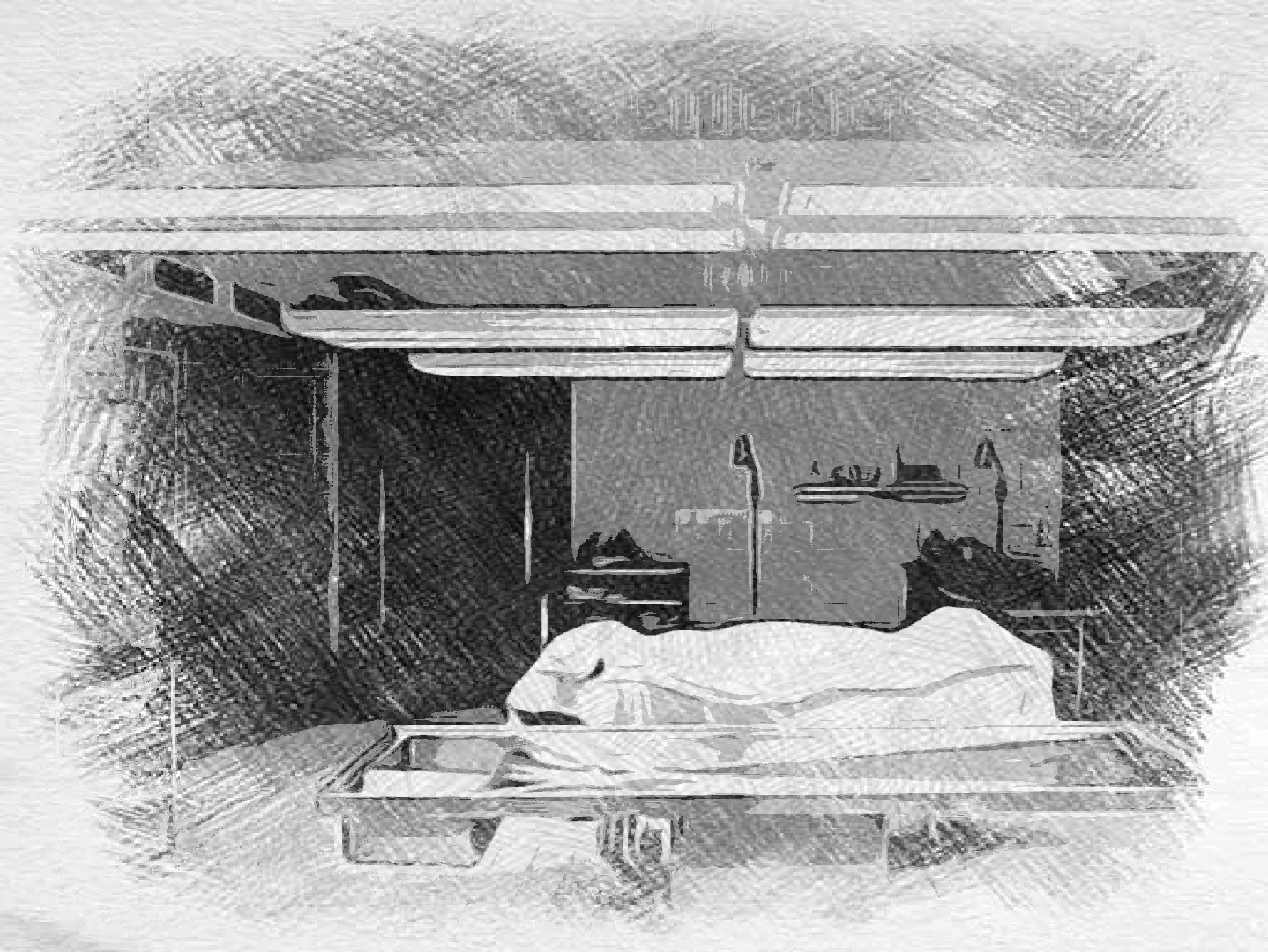 Al entrar a la oficina de la morgue me pareció extraño ver qué la misma estaba a media luz y al entrar un poco más hacia la cava refrigeradora, observé cómo un hombre mayor, blanco, delgado, vestido con una bata blanca y con aspecto demacrado, me hizo señas para que entrara hasta la cava en la que obviamente estaba el experto acompañado de otro funcionario más.