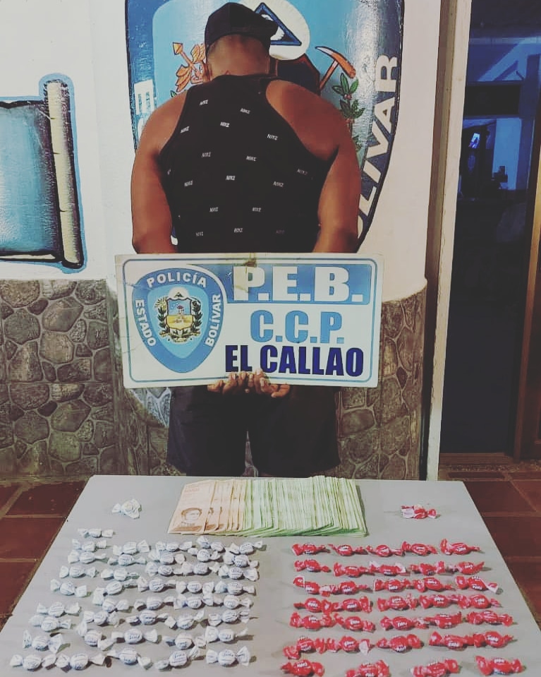 El Callao.- Un ciudadano fue detenido por funcionarios de la Policía del Estado Bolívar (PEB), por presuntamente ocultar droga en caramelos de menta y fresa.