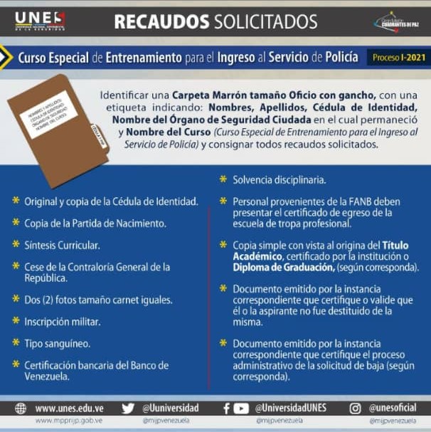 Desde este lunes, a través de la Universidad Nacional Experimental de la Seguridad (Unes), inició la captación de funcionarios activos o exfuncionarios que deseen formar parte de la Policía Nacional Bolivariana (PNB), Policía del Estado Bolívar (PEB) y Policía Municipal (PM).