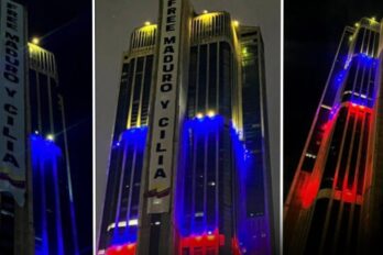 Uno de los mensajes más llamativos se observa en las torres de Parque Central: una pancarta con el mensaje “free Maduro y Cilia”.