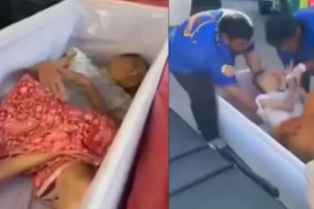 La mujer, de 65 años, sorprendió a sus familiares al golpear la tapa del cajón antes del comienzo de la ceremonia en un templo de Tailandia.