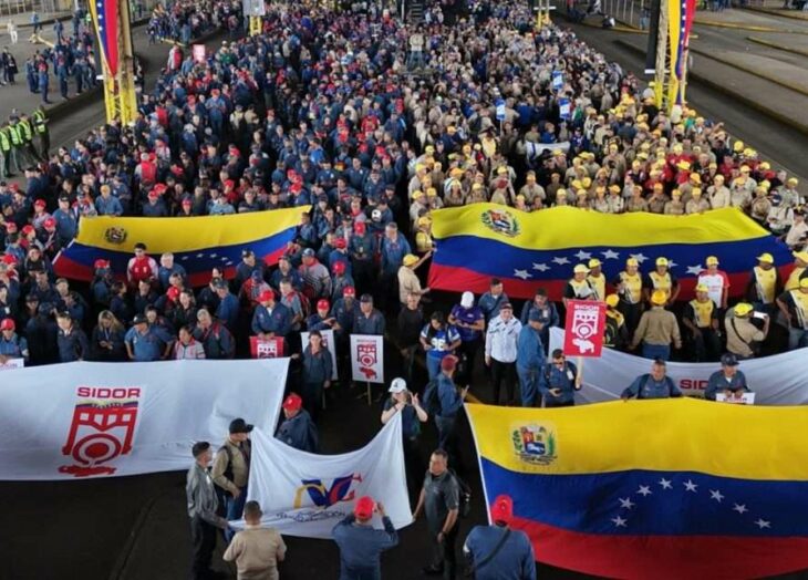 La clase obrera trabajadora del estado Bolívar se movilizó este martes para exigir el cese de las medidas coercitivas y unilaterales que pesan sobre Venezuela, así como la liberación de la pareja presidencial.